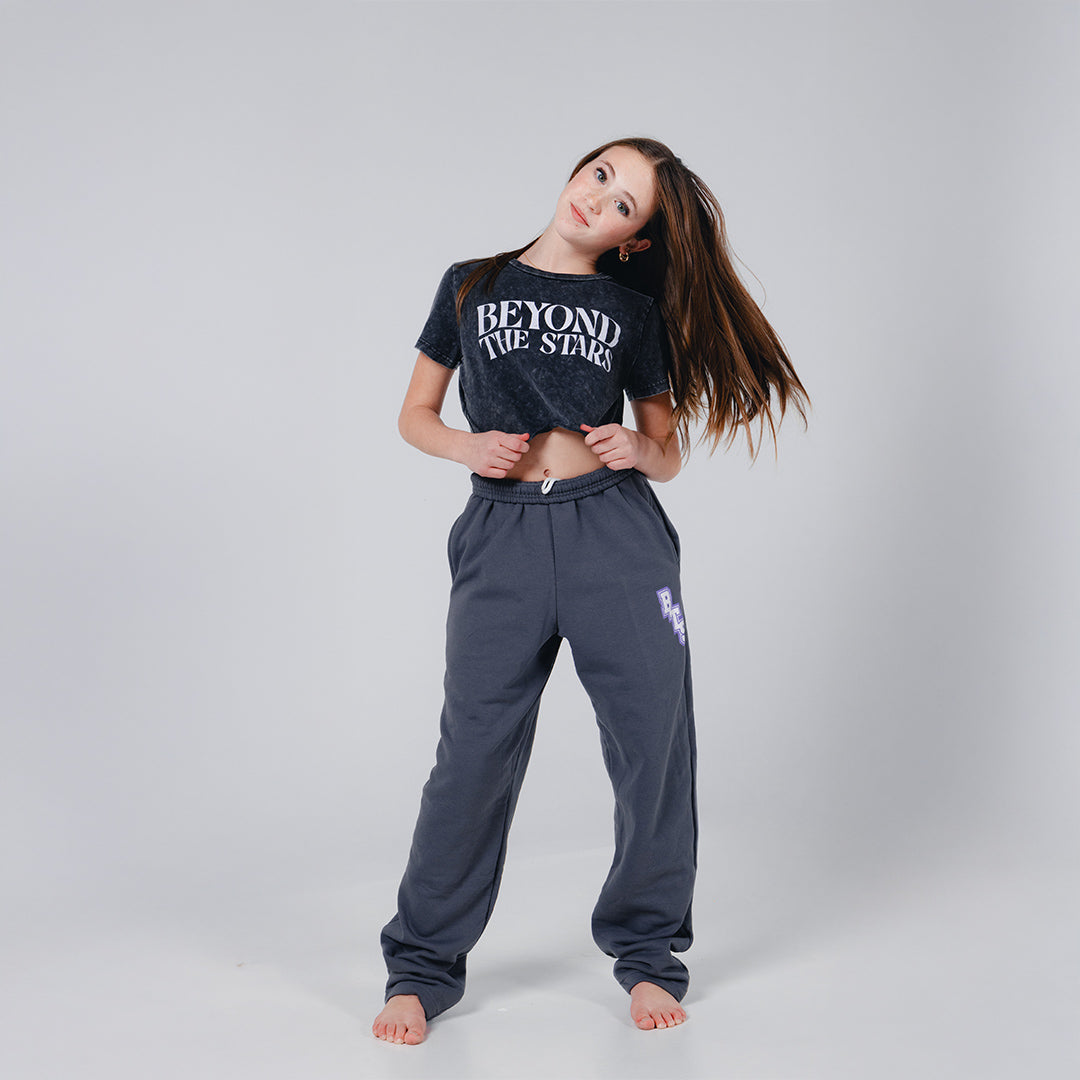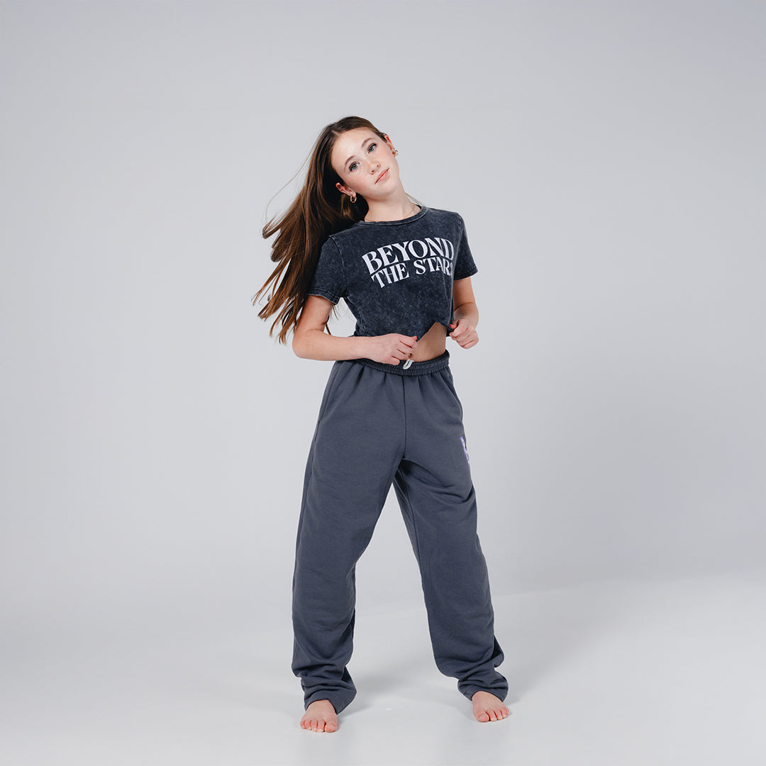 Take your style Beyond The Stars with this bold, black mineral wash crop top. Featuring a vintage-inspired white design, this top blends edgy flair with casual comfort. The raw hem of the crop gives it an edgy look.